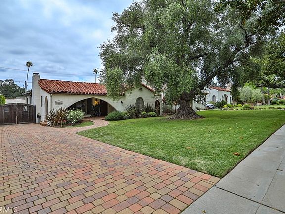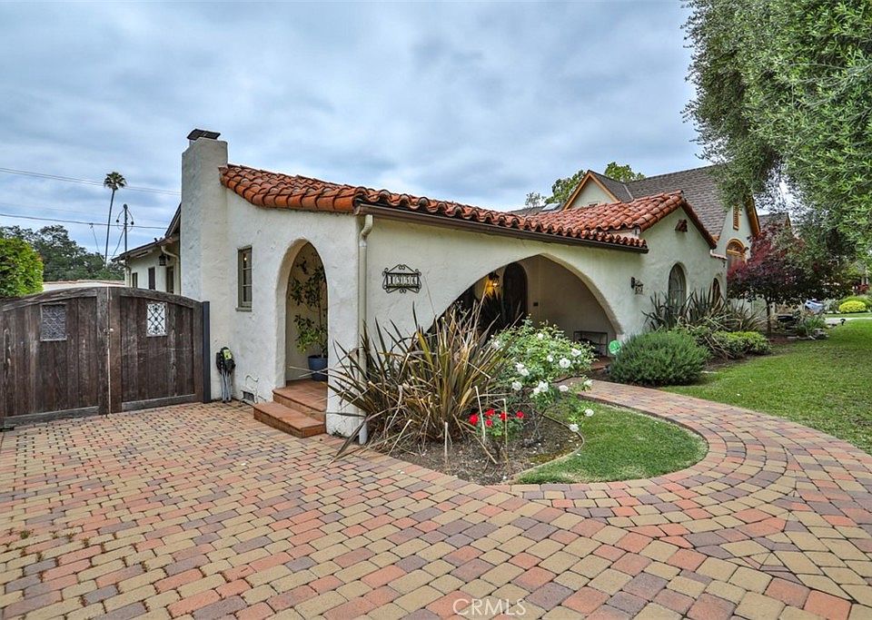 Known as the Moxley Abernethy House, this circa 1928 Spanish Revival style home is an exemplary representation of the style. Inspired by the architecture of Spain, rich stylistic elements include elaborate tile accents, wrought iron grillwork and hardware, half rounded arches, dramatic beamed living room ceiling, casement windows, numerous original sconces, terracotta roof tiles. The covered veranda extends the living space, and was beautifully designed with intricately patterned tilework and built-in seating, a lovely gathering spot for family celebrations or larger-scale entertaining. The exquisitely remodeled kitchen offers granite counters, tumbled marble backsplash, and stainless steel appliances including 5-burner gas range, built-in microwave, refrigerator and dishwasher. Enchanting rear gardens feature ornate fountain and fruit trees. Located in the desirable Brigden Ranch community, this one-of-a-kind residence is not to be missed. Don't miss the California Basement, upgrades include Roof in 2023,