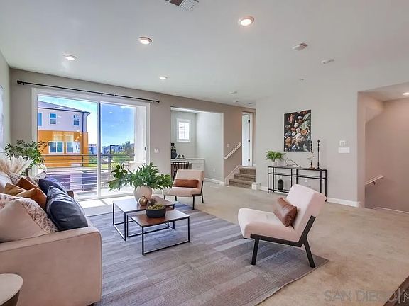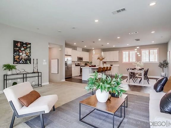 This home is priced to sell! With extensive upgrades throughout, it offers one of the most competitive price-per-square-foot values on the market. See the full list of upgrades below. Discover contemporary living in the heart of Millenia! This vibrant community offers effortless access to parks, shopping, dining, and everyday conveniences right outside your door. Step into this stylishly upgraded end-unit (only one wall shared) rowhome featuring 4 bedrooms and 3.5 baths, including a private first-floor suite—ideal for guests, extended family, or a home office. The kitchen serves as the focal point of the home, complete with white shaker cabinets, quartz countertops, a large center island, and stainless steel appliances. Upstairs, you’ll find three additional bedrooms, including a spacious primary suite with a walk-in closet and spa-inspired bath featuring dual vanities and a soaking tub. Enjoy built-in energy savings with solar panels, plus the convenience of an attached two-car garage and in-unit laundry. Community perks include a sparkling pool, relaxing spa, and multiple playgrounds. Located directly across from Otay Ranch Town Center and minutes from scenic trails, Otay Lake, and popular eateries like Common Theory Public House and Sura Korean BBQ—this is modern living at its best in one of Otay Ranch’s most sought-after neighborhoods.