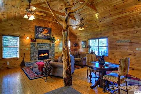 Beautiful Log Cabin in desired area. All wood with hardwood floors and complete tongue and grove throughout inside. This cabin is in immaculate condition. All on one level (no stairs). Open floor plan with exposed beam cathedral ceiling, and a massive stack stone fireplace. The open kitchen has beautiful handcrafted custom cabinets. Hardwood floors expand throughout the entire cabin. French Doors lead to a fabulous screened in porch with its own gas stack stone fireplace and Top Of The Line Hot Tub. Porch extends to the whole width of the cabin. A perfect place to spend your days and evenings ,soak in the hot tub, while enjoying the glow from your fireplace in complete privacy. Brokered And Advertised By: Smokies Investors Real Estate & Auc Listing Agent: PRISCILLA SUE BARKER
