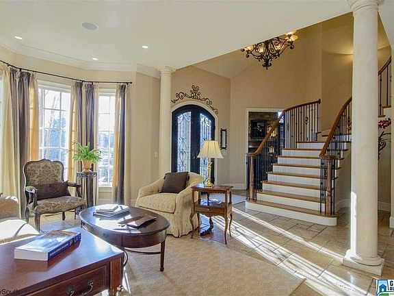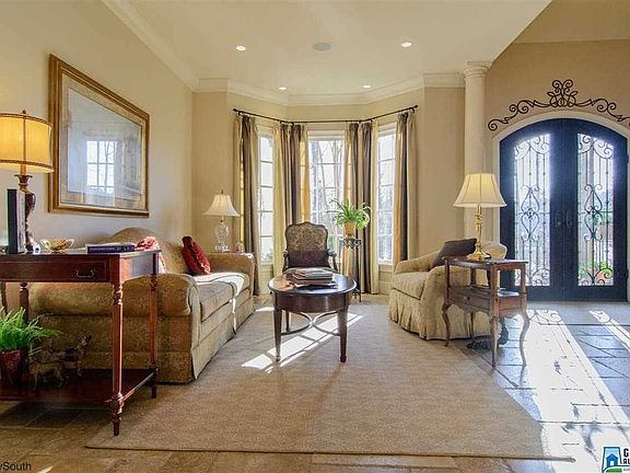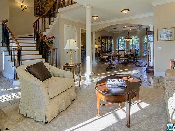 This fabulous French Provincial home is tucked away on a gorgeous private lot in the Rosemont subdivision of Vestavia Hills. It has 6 bedrooms, 4 full baths, 2 half baths and a main level 3 car garage. Custom built with careful attention to detail, it has every amenity you can expect. The stone façade is complemented by landscaped gardens, planting beds and an exquisite fountain set in a quiet garden welcoming visitors to the two-story covered entry. The interior main level features large and flowing living spaces, well-appointed with travertine and hardwood flooring, tall ceilings, vaulted and tray ceilings, deep cove crown mouldings, tall solid wood doors, three fireplaces, and an abundance of windows. Wonderful gourmet kitchen, main level master suite, professional landscaping, Kohler generator, incredible outdoor living with a fireplace and outdoor kitchen and so much more! You must see this stunning home!