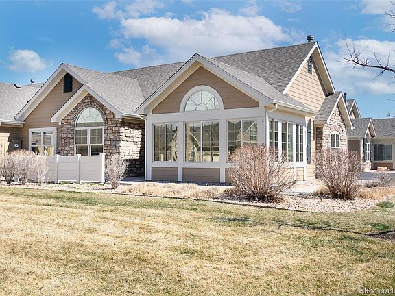 Welcome home to the ultimate blend of classic elegance and modern comfort at the Villas at Great Plains. This charming corner unit, enveloped in a welcoming courtyard entrance, boasts light-filled interiors complete with vaulted ceilings, arched windows that flood the space with sunlight, and luxurious main floor living. The residence dazzles with new designer paint, plush new carpet, rich hardwood floors, and French doors leading to welcoming spaces. A cozy gas fireplace sets the ambiance, while the breakfast bar, granite countertops, and stainless-steel appliances make the kitchen an entertainer's delight.