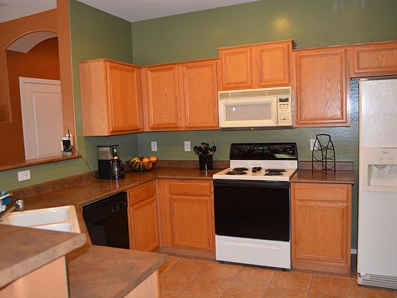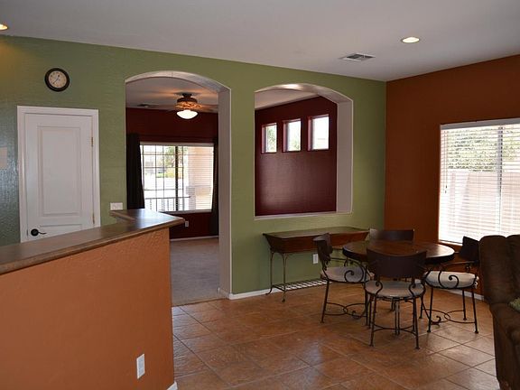 Lovely home featuring a very functional & cozy 3-bedroom, 2-bath with a spacious front room & a nice size kitchen that opens to the family room & dinette area. This home has upgraded ceramic tile with a decorative border, upgraded carpet, a large laundry room plumbed for a sink, 2-inch blinds, ceiling fans throughout, warm paint colors & is move in ready. The master is larger with an extended bay window & there is a niche in the hallway perfect for a desk/office area. The backyard has a covered patio with an extended concrete entertainment area, sprinkler system (front & back), large concrete slab for trash dispensers & a concrete walk way. Excellent ''A'' Rated schools, a community pool & several large community parks within walking distance. Appliances & Home Warranty offered at COE