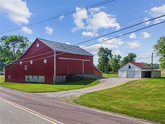 Step back in time with this classic farmhouse. Enjoy the timeless craftsmanship such as the intricate woodwork framing the windows, doors and staircase of this generously sized four-bedroom home. Third floor could be used as a fifth bedroom or additional living space. Imagine the history of a house with a grand foyer and a butler's staircase and envision the possibilities of it with some renovations. Jump right into the aesthetic upgrades as this home has a brand new metal roof, hot water tank and a 200 amp electrical panel. Free gas is included on this property up to 200,000 CU FT/Year. Enjoy the views of the surrounding farm land from your front and back porch. So many options for the massive space in the two-story barn and detached garage. Don't miss this unique opportunity.
