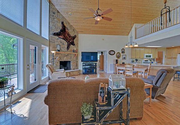 Upscale Mountain view chalet on 4.46 acres in the Tarheel Community. 2/3 with sleeping loft and potential for another bedroom on lower level. Spacious kitchen with corian counters, high end appliances, floor to ceiling rock fireplace, master bedroom on main level with fireplace & private deck, dual fuel heating, 2 car attached garage on main level, basement offers second garage and workshop with bath, detached carport, firepit area, outbuilding, branch and so much more!!! Home has a 3 bedroom septic.