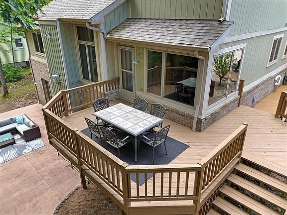 One block from Higgins Lake, you will find this stunning 3664 sf home which has off-season views of the water. This house features 3-bedrooms, with a primary ensuite on the main floor, and 4 baths. The finished walk out basement leads to a private backyard oasis with lush landscaping, patio area, plus a bon fire pit. Inside you will find updates throughout the entire home including granite countertops, new kitchen appliances, vinyl plank flooring, light fixtures, bathroom vanities, paint, and more. On those chilly days and winter nights you will appreciate the lovely fieldstone fireplace, a true focal point of the home. The dining area leads to a spacious upper-level deck with a beautiful view of the wooded backyard, where you can enjoy al fresco dining. If you have boats, SXS, snowmobiles, or RV's, this property can hold them all with TWO garages. A 22x22 attached garage as well as a 24x32 detached heated garage with 20-amp service and pull-through access. The paved driveway offers plenty of room for several cars and recreational vehicle parking, making it easy to host friends and family. A location bonus: you can walk to the nearby coffee shop for your favorite morning beverage or pick up a delicious Country Corner's Pizza.