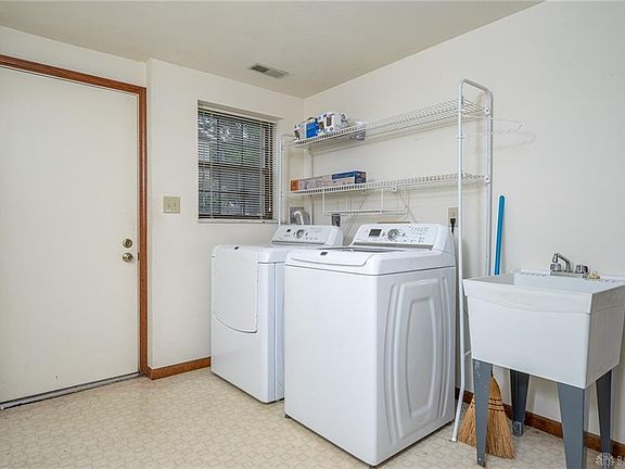 Don't miss this one! Popular one owner tri-level floor plan, brick exterior, beautiful yard with mature trees and shed. Large back patio. All exterior light fixtures are new. Convenient location close to WPAFB, Wright State, shopping, restaurants. Large foyer welcomes you into main level living room with bay window and dining room. Eat in kitchen has garden window, new vent hood, new dishwasher, new disposal, pantry closet and beautiful granite counter and backsplash.Lower level has large family room with woodburning fireplace with gas starter (Trustee has not used so not warranted), large utility room with newer washer dryer combination that conveys, and full bath and fourth bedroom. New HVAC 2015. Water heater 2014. Upstairs offers two bedrooms plus large master bedroom with en suite bath. Garage has storage above with pull down ladder.
