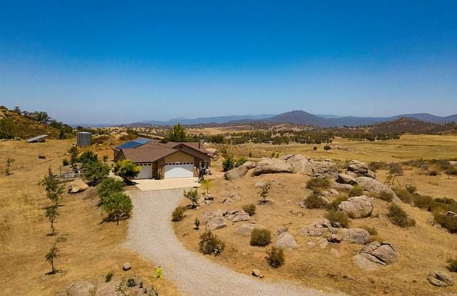 Over 9 acres of level to rolling land with magnificent, panoramic mountain and valley views in a private setting with fruit and citrus trees, tree house, swing set, firepit, and rock outcroppings. Spectacular custom home centered around the gourmet, double island kitchen, stainless appliances, walk-in pantry, and forever views. Save $$ on utility bills with owned solar w/back up generator and well water. Sought after split floor plan with master suite in the separate wing, luxurious master bath with jetted soaking tub, separate shower. Upgraded with luxury, commercial-grade laminate flooring. Whole-house filtration and softener system. New energy-efficient, "cool" roof. Sought after "O" county zoning designator.