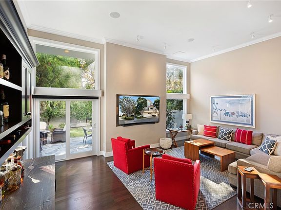 An extraordinary split-level end unit presenting an unmissable opportunity for those seeking a convenient lifestyle in the coveted enclave of Seacliff on The Greens. The incomparable three-bedroom, two-and-one-half-bathroom residence provides a bonus room loft which can be converted to a third bedroom, large patio area, and attached two-car garage with finished storage. Elegant in its design, the freshly remodeled home is introduced by a manicured front lawn and welcoming entry staircase. Inside, exquisite engineered wood flooring, newer windows and solid wood doors, Lutron electric shades, custom paint, crown molding, LED canned lights, and designer light fixtures complement the property's beautiful surrounds. On the first level, a sunken living room beneath high ceilings is served by a wet bar with an ice maker, two refrigerated doors, and wine cooler, and opens to the oversized and very private patio making it the perfect entertainment venue. Ascending a few steps, the main level is dedicated to a spacious secondary living area, formal dining room adjacent to a built-in wine rack, and a gorgeous gourmet kitchen equipped with leathered granite countertops and high-end Dacor appliances. Sharing a footprint with the kitchen is a gracious balcony with gas hookup. Follow the custom-crafted handrails up to the third level where all three bedrooms and bonus room (optional fourth bedroom) reside. Behind double doors, the luxe master suite features a private balcony, walk-in closet, and spa-like marble bathroom with soaking tub, separate walk-in shower, and dual vanity sinks. Available for sale, the turnkey home's bespoke furniture is perfectly tailored to suit the spacious floorplan of approximately 2,252 square feet. Offering a plethora of recent upgrades including a monitored alarm system, Lutron electronics which can be operated by a smart phone for all controls and a garage controller app. The residence also features newer electric, plumbing, fixtures, cabinets, and large water heater. Nothing in this home remains untouched. Residents of the Seacliff community enjoy a gated entry, pool, and spa in close proximity to award-winning schools, Dog Beach, Huntington Golf Club, verdant parks, and multitude of dining and shopping.