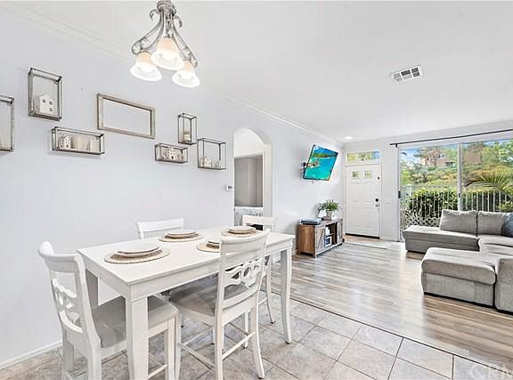 Welcome home to this light and bright lower level Portola Hills 2 bed 2 bath home in the beautiful neighborhood of Bella Palermo in sought after Portola Hills. Through the private patio enter into the spacious and open concept living area complete with high ceilings, and beautiful laminate floors. In the kitchen find recessed lighting, and ample counter space. In the main bedroom find dual closets and a beautifully remodeled en-suite bath with a marble walk-in shower and dual vessel sinks. A secondary bedroom and bath, plantation shutters, laundry, and direct access two-car garage are just some of the features you wont want to miss. The community of Bella Palermo has a sparkling pool, spa and exercise room, and is located close to great shopping, excellent schools, walking and hiking trails and easy access to freeways for easy commuting. Dont miss this opportunity!