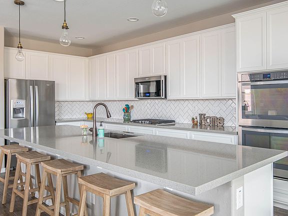 Premier CalAtlantic Home in the exclusive community of BLUE HORIZONS nestled on a private oversized cul-de-sac lot! Classically refined enjoying every amenity and upgrade w/the finest finishes! Spacious great room floorplan w/4 bedrooms, a den & loft w/2.5 baths and 2520 impressive square feet! Unbelievable gourmet chef's culinary center-island kitchen w/quartz counters, subway tile backsplash, upgraded cabinetry w/42'' uppers, crown molding, high-end Whirlpool appliances including double ovens, gas cooktop, refrigerator, microwave & sizable pantry! LARGE wood-plank tile flooring w/low-pile Berber neutral carpet, upgraded lighting, 2'' blinds, etc. Luxurious master suite features dual sink quartz vanity, oversized shower & two HUGE walk-in closets! Massive 9' sliding doors lead to... resort-style living w/covered patio, sparkling salt water pool, putting green, gardens and more! The neighborhood community is surrounded by incredible parks w/tons of grass & shade trees! ***3-Dimensional Virtual Tour and Professional Video in the Photos Tab***