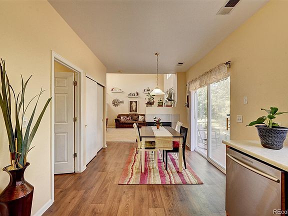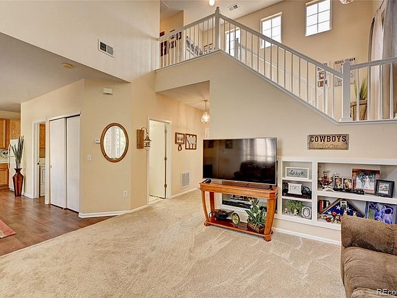 This 13 year old home, located at Singletree@DIA is decorated beautiful and "gently used." It has on oversized, side load, and completely dry-walled 2 car garage. It comes with a quiet and quality garage door opener with a key pad outside. There are 3 bedrooms plus 2 1/2 baths. The roof is tile and the house has 1430 Sq Ft with lots of parking for your guests. The front has a sprinkler system. The Air Conditioned home displays above average maintenance levels and features: open floor plan with see-through fireplace between living and dining rooms, upgraded 42 “ kitchen cabinets, counters, appliances with large built in entertainment center in livingroom. Security system is installed and a large 12 X 12 wood deck leads to newly landscaped back yard with lots of trees, including hawthorn, willow, Russian olive, peach, cherry, lilac and 3 pinon pines. A white spindled staircase leads to the three upstairs bedrooms and two baths. Two bedrooms have walk-in closets. This house has lots of light and there is an alcove just above the stairs for a desk and computer. All three bedrooms, the livingroom and garage have cable. The most recent appraisal was $245K and done for refinance purposes which didn't happen due to employment issues.