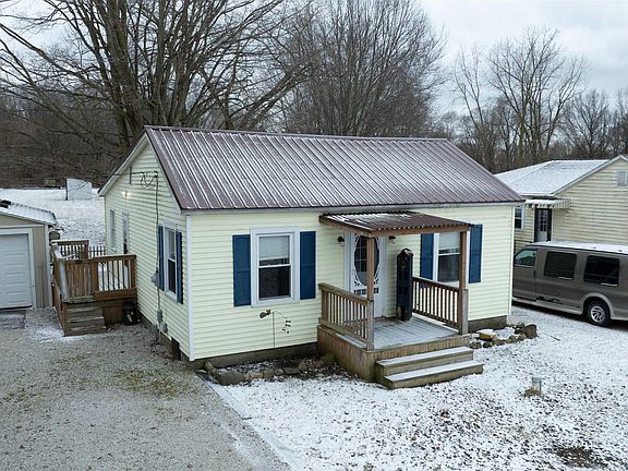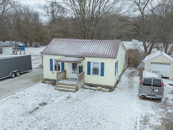 This charming move in ready home 2 bedroom, 1 full bath ranch style home sits on over half an acre, just west of Plymouth with easy access to US Hwy 30 for a convenient commute. Inside, you'll find updated pergo flooring in the kitchen, which also features a breakfast bar and all newer appliances included. The open concept design seamlessly connects the dining and living room, creating a warm and inviting space. Updated light fixtures throughout the home adds a modern touch. The spacious bathroom includes a brand new vanity and paint for a fresh look. Need more storage? The unfinished basement offers plenty of extra space. Step outside and enjoy the cozy covered front deck, complete with a newer metal roof for durability. The property also features an insulated 1 car detached garage with extra storage space on the side, plus a backyard shed thats perfect for additional storage or even small animals. The very large fenced in back deck provides an amazing view of the backyard, making it the perfect place to relax and unwind. This is a great opportunity for first time homeowners at an unbeatable price.