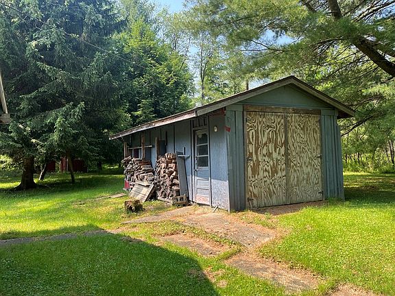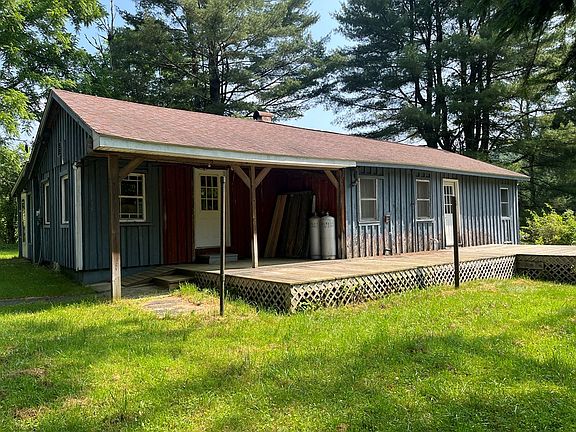 Looking for a recreational property or rural residence? This two bedroom, one bath, 923 sq ft home may be just what you are looking for. The living room has a stone woodburning fireplace, with first bedroom off the living area, kitchen has newer oak floors with range and refrigerator, second bedroom off kitchen hall and 3/4 bath with laundry. The front of the home has an enclosed porch (small wood stove needs replacing) and at the rear of the home an extensive deck. All furnishings and riding lawn mower included (2-3 years old). Taxes are $997.95