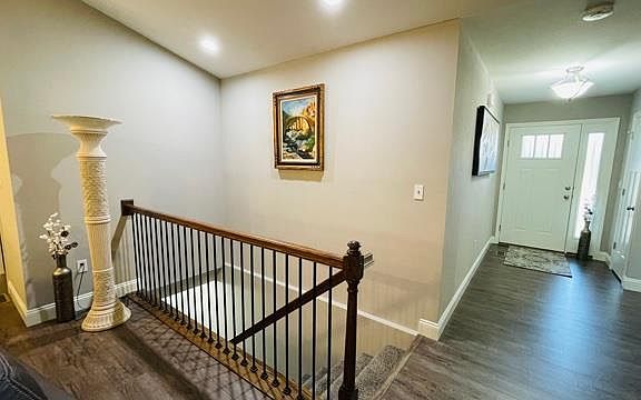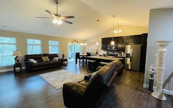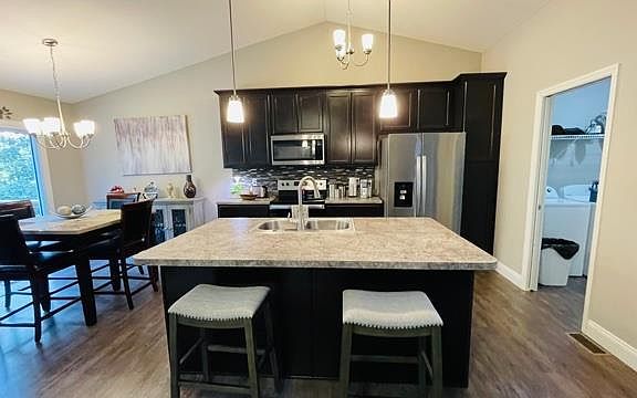 Beautiful home ready to move in, better than new. Landscaped front, walk out basement backing to common grounded wooded and private. The open floor plan offers luxury vinyl plank throughout, 42' cabinets, large laundry room, breakfast bar open to great room. The master has a four window bay and walk in closet with a full window. Open staircase with spindles, garage door opener, custom blinds throughout home. Cathedral ceilings in kitchen and great room. Such a find, this beauty will go fast! Stone and shake front, so many upgrades too many to mention here.