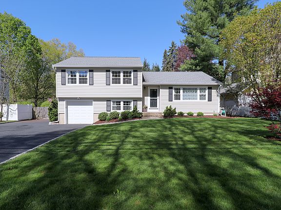This split level is beautifully updated with an open floor plan. This 3 bedroom, 2 1/2 bath home is in the Riverfield neighborhood. There are refinished hardwood floors on the main level and in all 3 bedrooms. The lower level is the family room which adds 417 sq. ft. It is carpeted with a half bath, laundry area and an entrance from the attached one car garage. The backyard is .22 acre, newly landscaped and fully fenced with a shed, blue stone patio and trex deck. The yard is quiet and private! This home is immaculate and a pleasure to show! There is nothing to do but move in! Close to town, train, highways and shopping.