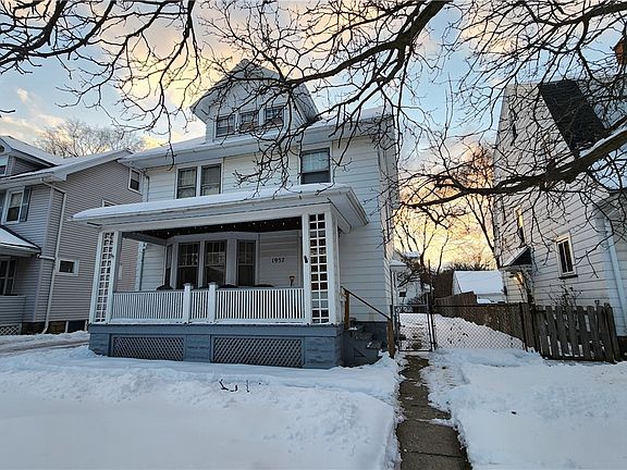 Wonderful opportunity waiting just for you! This solid 3 bdrm colonial is over 1350 sq ft plus a partially finished basement. Roll up your sleeves and bring your creative design ideas! Spacious rooms throughout. Public records say this gem was built in 1940 but it has all the wonderful characteristics of a 1928 Rochester beauty. Leaded glass windows in hallway and dining room, gumwood trim in the living room and dining room, gumwood and leaded glass pocket living room entry door, decorative fireplace with built in bookcases, hardwood flooring and so much more. Bright living room, large formal dining room with atrium door to deck area. Good size kitchen with room to move around, plenty of cabinet space and all appliances included. There is a laundry chute on the first and second floor. Upstairs 3 nice size bdrms with ceiling fans. Attic is a walk up with tons of storage space! Basement is partially finished. Bright laundry area, small family room area with a dry bar and 1/2 bath. Storage space everywhere! Cute little workspace nook! Updated 150 amp electric service. Roof was a complete tear off in 2013. Back yard is partially fenced. two car garage has electric. It's going to be summer soon! Picture yourself relaxing on your front porch! All this and a Convenient location! Walk to the zoo, hiking and biking trails. Minutes to shopping, expressways, hospitals, parks, restaurants and breweries. Affordable and a great way to build sweat equity! So many possibilities! Hurry! Showings start Thursday 2/13/25 at 10am and offers will be reviewed after 2pm on Monday 2/17/25.