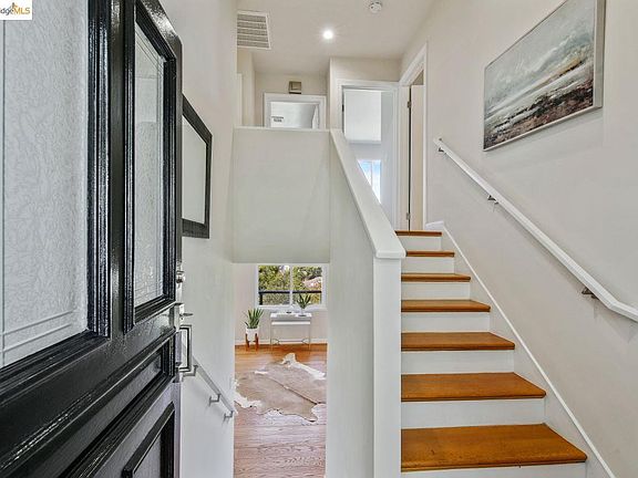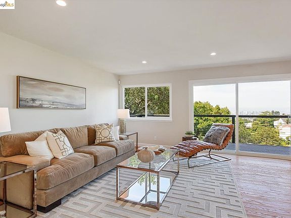 Tucked away on a cul-de-sac is this stunning contemporary with commanding Bay and City Views. Sunlit by day, dazzling at night! As you enter the grand public room hosting the living room, dining room and kitchen, the mesmerizing views from the inside as well as from the large deck delights you instantly. Whether you are preparing a casual meal or an epicurean feast with your family and friends, the chef's kitchen is fully equipped with stainless steel appliances, quartz counters and white cabinetry. A bedroom and full bath is on this level as well. A short flight of stairs up, one can find the sumptuous master bedroom suite as well as 2 additional baths- all remodeled beautifully. The lower level family room will undoubtedly be the place where the teenagers congregate. With easy access to the terraced back yard and fire pit, this is the place to have many fun filled events. A sauna, full bathroom, home office with separate entry and wine storage is on the lower level.
