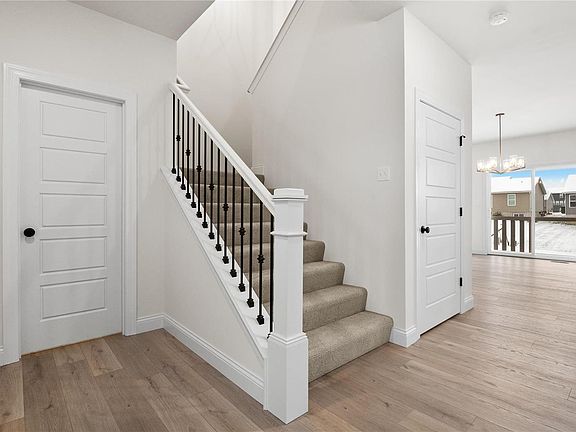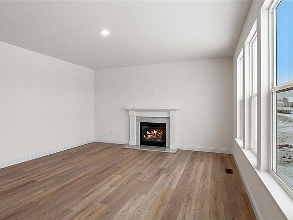 Hickory features 2,394 sq. ft. with 3 bedrooms, 2.5 baths, 2-car garage plus 3rd tandem bay. This home is expected complete by year-end for closing in 2024. Spacious foyer, coat closet, powder room and flex room. Open concept plan features kitchen with walk-in pantry, eat-in café, and great room. 36” direct vent fireplace. Kitchen has staggered height cabinets, center island, stainless steel appliances including 30” built-in self-clean single wall oven, electric cooktop, microwave, dishwasher, chimney hood, quartz countertops. 9’ ceilings and luxury vinyl plank flooring across the main floor. 2nd story features a Loft, convenient second floor laundry, secondary bedrooms –each with walk-in closet, owner’s suite with walk-in closet, private bath with double bowl sink, adult height vanity & additional included features: ¾ bath rough-in LL, Pella windows, architectural shingles, coach lights at garage, fully sodded yard, professional landscape package and much much more.