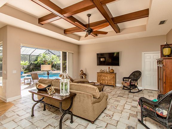 Pace Island Pool home on one of the best streets in Fleming Island. This 5 bedroom 3 bath all on one level. 3 car side garage. This home is perfect for a home office/home schooling enviroment. Ten foot ceilings in entire the house with wood beams in kitchen and great room, real oak wood floors, granite and quartz counter tops, custom cabinets, tiled backsplash, two-sided gas fireplace, built-in entertainment area and book shelves. The space is flexible and private for your personal needs. Stack-back sliders open the great room to screened pool with waterfall, and covered entertaining area with summer kitchen built in grill food prep sink. New roof being installed before closing. The pool was resurfaced with a pebble finish in 2019. 24 hour manned gate, 2 pools, dock and tennis courts.