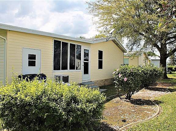 3 BR 2 BA 1350 SQ FT. This charming home has so much to offer and is priced to sell. Updated kitchen, and tiled floors. open split floor plan with huge windowed Florida room, New paint through out, spacious living room with built in book shelves, extra spacious golf cart garage with workshop and AC. This home has a warm welcoming feel and is partially furnished. Come and See for yourself. New Roof 2018.