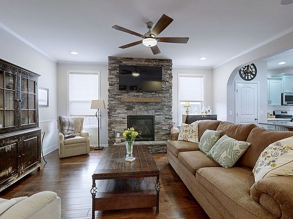Live, Love, Work & Play in this exceptional Stonewater Dr. home that truly has it all! The sellers have spared no expense on upgrades, giving you peace of mind and move-in ready luxury. This gorgeous home features open concept living with all bedrooms on the main floor, a spacious dining area, and a large upstairs bonus room with custom built-in shelves, beverage fridge, and a large walk-in attic for storage. The home boasts a brand-new roof (just 3 years old), new HVAC, new water heater, new appliances that remain, new quartz countertops with an expanded island and new painted cabinets and cabinetry, new carpet in the master and front bedroom, hardwood floors throughout, fresh landscaping, and a beautiful solid wood front door. Custom details are everywhere—lifetime warranty blinds, custom closets, detailed wainscoting in the foyer and front bedroom, and a completely remodeled tile walk-in shower in the primary suite. The oversized screened-in patio with extended concrete pad overlooks a private wooded backyard with full irrigation in the front and back, perfect for year-round outdoor living. Additional features include a gas stove and community amenities such as an Olympic-sized pool, clubhouse, fitness center, and walking trails. Every detail has been thoughtfully updated—this is a home you won’t want to miss!