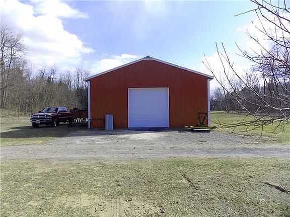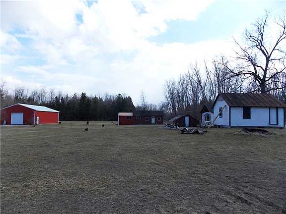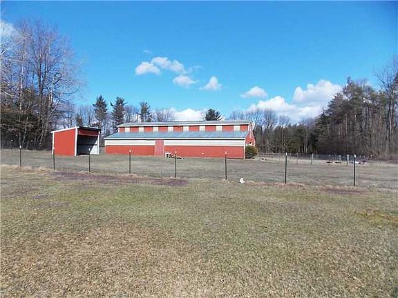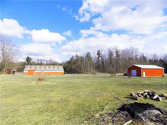 17.7 acres of fenced pastures and woods compliment this farmette. 45 ft by 75 ft horse barn with stalls,tack room and hay storage. The horse barn has a separate electric service. Recently constructed garage, 35ft by 45ft with concrete floor, large chicken coop, small green house, shed with root cellar and an older 2 story barn that needs tlc. The hot tub stays.The house has 2 bedrooms upstairs and a large first floor room that can be the 3rd bedroom with a door installed. The kitchen is spacious with walkin pantry,Formal dining room with built ins. The large livingroom has a pretty bay window.