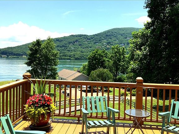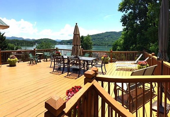 Unobstructed LAKE & MOUNTAIN VIEWS from spacious, well maintained home just off Lake Chatuge. New HVAC (2015). Kitchen gutted & renovated w/upgraded appliances, countertops (Silestone Helix), cabinets & tile flooring (2016). Master bath gutted & renovated. Both guest baths renovated. Interior repainted in 2016! It's like buying a new home! Outdoor, sunroom & screened porch funiture included in sale. All furniture & accessories on the terrace level included w/exception of a few items (see list in docs). Fenced yard & 10x16 outbuilding. Less than a mile to the marina! 2nd bedroom on main floor being used as a laundry room but easily can be converted back & laundry moved to hook ups in garage. Too much to list - see online docs!