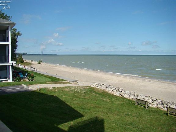 The view and Lake Erie experience doesn't get any better, just out the door is your association beach and pool. All you need for vacation or year 'round living. One open and one enclosed balcony overlooking the lake where the sounds and sites of the water are yours to enjoy. Manageable size with 2 bedrooms and 2 baths. Each bedroom has its own attached full bath. One car garage. Neighboring full service marina.