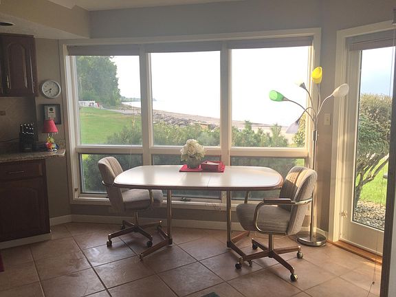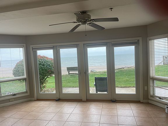 Opportunity to live on the beach. First floor condo with full panoramic view with span of 9 windows. Enjoy the 10' patio and 20' of lawn, then beach right up to Lake Erie. This end unit has direct access to the beach. Watch the sun rise and set from the beach located steps from this condo. Completely upgraded interior with granite counter tops. Includes stove, fridge, microwave, dishwasher, disposal, new washer and dryer and new heat and air conditioner unit. Very Clean.