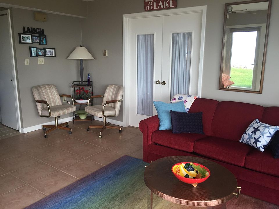 Opportunity to live on the beach. First floor condo with full panoramic view with span of 9 windows. Enjoy the 10' patio and 20' of lawn, then beach right up to Lake Erie. Watch the sun rise and set from the beach located steps from this condo. Completely upgraded interior with granite counter tops. Includes stove, fridge, microwave, dishwasher, disposal, new washer and dryer and new heat and air conditioner unit. Very Clean. Enjoy family fun at the pool with side patio throughout the season. Extended side grass area for social activities. On site parking with newly paved parking lot. Available boat dock storage is adjacent to the property. All exterior summer landscaping and winter maintenance is included. Condo price is currently as unfurnished. Pictured furnishings with turn key provision is an option for additional $200 per month. Owner pays Home Owner fees and taxes. No garage available. Parking space directly adjacent to the condo. Patio storage unit is provided.
