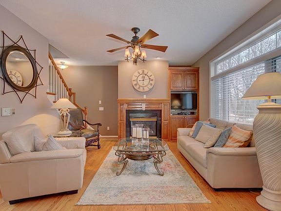 What a find in the Lafayette Woods neighborhood! This stunning 3 bedroom, 4 bath two story has it all! Great floor plan with beautiful windows bringing in tons of natural light. Hardwood floors throughout main and upper levels. 2 family rooms each with fireplace. 3 season porch leading out to deck and picturesque backyard with Koi pond. 3 bedrooms up with private master spa-like bath. Finished basement with 2nd family room, fireplace, 3/4 bath and large walk-in closet. Basement also has direct access to garage. Oversized heated 3 car garage with plenty of room for storage. Lovely exterior with James Hardie siding and maintenance free deck. Walk to schools, parks & quick drive to Hwy 10 and I-169. Hurry to make this your new home just in time for spring and watch the beautiful landscaping and pond come to life!
