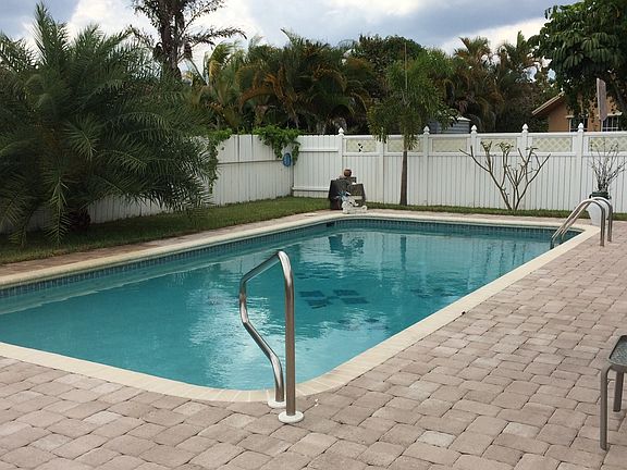 Beautifully maintained POOL home with spacious fenced backyard in one of Boca's Best Value Neighborhoods. - Beautifully maintained POOL home with spacious fenced backyard. - Laminate floors in all bedrooms, and title everywhere else. - One car garage, air conditioned and titled - New windows (2012) - Hurricane shutters - Sprinkler system - Sparkling pool - Fruit trees - Pavers driveway and pool deck - Gated/fenced RV/boat/truck parking (side of the house)