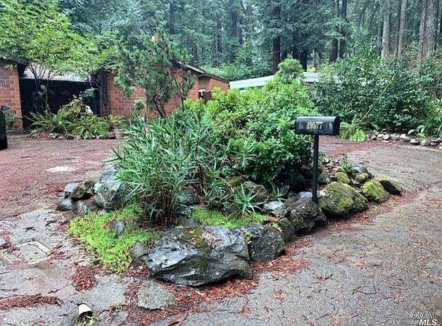 You can huff and puff, but you wont blow this house down. Very charming red brick home next to the Northwood golf course. Walk to golf course, restaurants, etc. Uniquely designed multi-level home features spacious entry way with floor to ceiling shelving. Step up to the beautiful living room/dining room with open beamed ceiling, fireplace and skylights. Then step down to the recently remodeled kitchen featuring a hammered tin ceiling, new top of the line gas cook top with hood, new floors and countertops. On the other side of the entry you will step up to a nicely redone bathroom with tile shower and bench. Two bedrooms one with Large walk-in closet and laundry. floor to ceiling shoe cubbies too! Radiant heat under bedrooms and bath floors. Front yard is spacious with plenty of parking. Fenced backyard has a beautiful red patio off the kitchen, deck just off the dining room, two sheds for storage, or...Surrounded by redwoods, yet sunny and open space. This is a truly unique home!