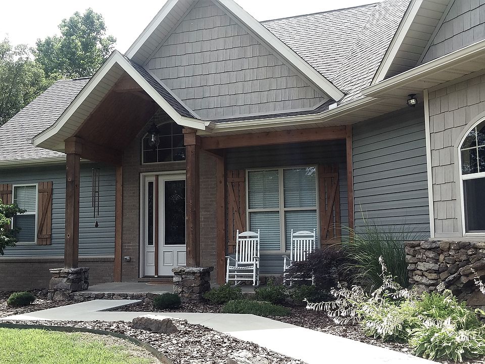 CONTRACT PENDING OPEN HOUSE CANCELLED Gorgeous custom 2300+/-sq ft home in perfect location, 8 minutes to boat launch and 8 minutes to shopping, banks and restaurants, all sitting on a tree covered 3.29 acres in horse friendly cul-de-sac. Mill Springs Cottage floor plan (can google) with 4 bedrooms, two baths, open concept living with 24 ft cedar beamed ceiling in lodge style family room, with wall of arched windows, hand-scrapped wood flooring and gas log native stone fireplace. Also has a unique screened in room off of breakfast area with pine log walls and wood burning native stone fireplace. Maple cabinets throughout kitchen and baths with granite countertops and designer fixtures. Property has newer 30' x 50' shop/barn building that is 90% complete and pre-plumbed for small bathroom. Too many other quality construction details to list; must see this special property to appreciate. Please call 479-925-8629 for showing by appt only; realtors welcome at 3% commission