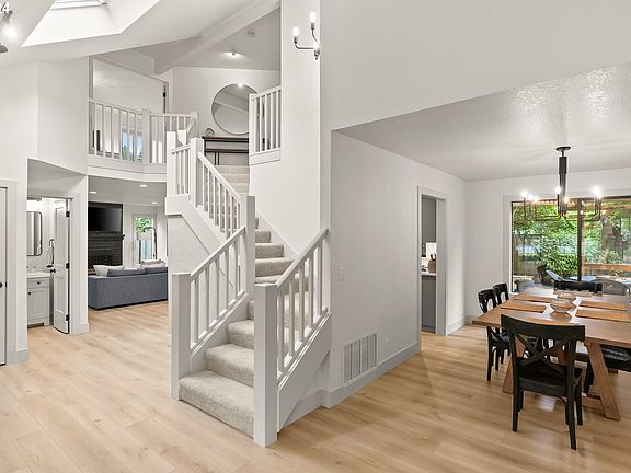 Discover your dream home in the tranquil Fox Hills neighborhood! This newly updated residence is nestled on a tranquil cul-de-sac, ensuring peace and privacy. The moment you step through the open entry with its elegant skylight, you'll feel the warmth and sophistication of this home. The heart of the house is the newly updated kitchen, it's a chef's delight. It boasts Quartz countertops, a generous island, a custom tile backsplash, soft-close cabinets, and stainless-steel appliances. Whether you're preparing a meal for a cozy family dinner or hosting a larger gathering, this kitchen is both functional and stylish. The living space is designed with versatility in mind, featuring two entertainment areas and a formal dining room, providing ample room for all your social events. Cozy up by the wood-burning fireplace or make use of the bonus room/office conveniently located on the main level.Retreat to the grand primary bedroom, where you'll find an updated ensuite bath equipped with double sinks, a large tile shower, and a spacious walk-in closet. The new Luxury Vinyl Plank flooring, fresh interior paint, and modern lighting throughout the home add a touch of contemporary charm. Smart home features, including a Ring doorbell and Nest thermostat, enhance comfort and security. The stylish laundry room with a barn door adds a touch of rustic elegance. Step outside to your beautifully landscaped backyard, complete with new Trex decking and a covered eating area. The large built-in bench is perfect for entertaining guests, while easy access from the kitchen and family room ensures that outdoor dining is both convenient and enjoyable. Conveniently located near schools, parks, shopping and freeway access.This Fox Hill gem combines modern amenities with charming details, making it the perfect place to call home.