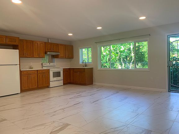 Newly constructed home with a separate two bedroom, one bathroom and two parking unit with private entrance. Full kitchen with quartz countertops and brand new appliances. Convenient location close to bus line and school. Quite and serene surroundings with lush greenery. Electricity, water & sewer is included. Shared washer and dryer included. $2,200/month