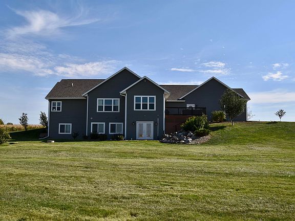 I am HONORED to present to you this Beautiful Majestic property situated on an acreage just minutes from Larchwood and only 15 miles from Sioux Falls. The 4000 square foot home was built in 2013 - designed and loved by the sellers! Not only does the home boast beautiful exterior features and curb appeal the interior design and finishes are beautiful and very well thought out. On the main level: 3 bedrooms including a Master with walk-in closet, full bath with jacuzzi tub and walk-in shower. Open concept kitchen with granite countertops, island with seating, dining room and family room with gas fireplace and a mudroom/laundry combined. There is also a separate 1/2 bath and full bath. The wrought Iron staircase takes you to the basement where you will find a wonderful family living space with room to entertain, 2 additional bedrooms, full bath, large utility room and walk out to the beautiful spacious backyard! This home is so spacious and thought out making it functional for all buyers! The property will be surveyed to approximately 2.5 +/- Acres for the sale. Garage doors 18 x 8 and 9 x 8 - taller than standard. This property will not last long!!!
