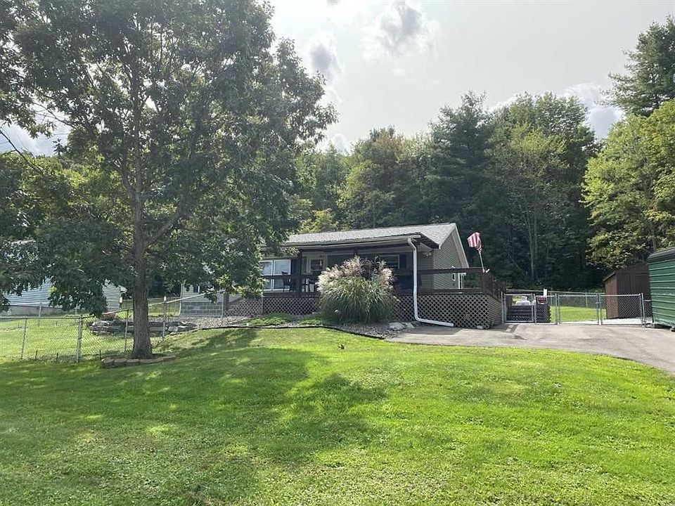 Beautiful setting for this 2014 Deeded Double Wide Home, Cathedral Ceilings - Open Floor Plan with Kitchen w/Island - Newer Appliances, Dining Room and Front Living Room, Master Bedroom w/Master Bath, 2nd Bedroom could be made back into 2 rooms. Covered Front Porch, Totally Fenced Landscaped Yard, Carport, Shed, New Driveway, SV Schools and NO FLOODING!! Views from the deck overlooking the Valley.