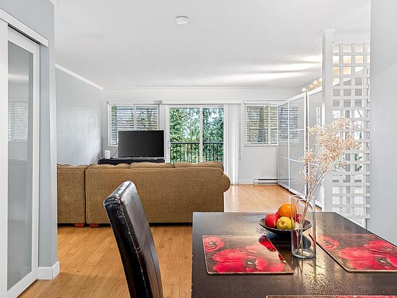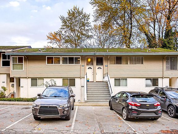 Lovely updated 2-bed, 1.5-bath one-level townhome in desirable College Park. Bright open floor plan with a spacious living room and large windows leading to a private balcony overlooking a peaceful greenbelt. The updated kitchen (2010) features granite countertops, modern cabinets, backsplash, newer stainless steel appliances, and flooring. Primary bedroom offers a walk-in closet and rare 2-piece ensuite. Newer laminate flooring, blinds, and windows throughout. Bonus large storage area—perfect for an office. Well-maintained complex with new roof (2009) and balconies (2011). Great location near Burnaby, SFU, schools, shopping, Barnet Hwy, and future Evergreen Line. Shows beautifully!