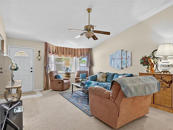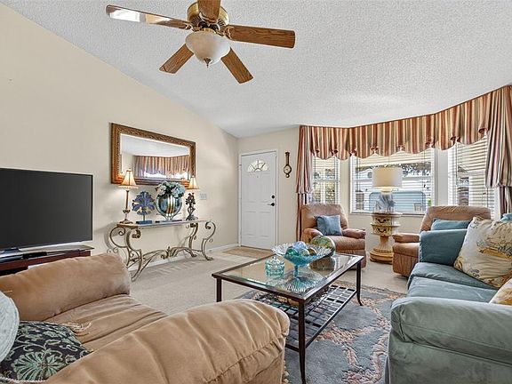 Outstanding GOLF COURSE FRONTAGE home in Highland Fairways! Enjoy beautiful views and privacy from this 2-bedroom, 2-bath home located at the hole #12. The kitchen has been tastefully updated with custom cabinetry, stone countertops, stainless appliances, real wood flooring and includes a cozy breakfast nook. The large dining room is just off the kitchen and provides a great space for entertaining. High ceilings enhance the open feel, while the bright Florida room fills the home with natural light. You'll enjoy great views from the rear Florida room that steps outside to the open patio—perfect for grilling, relaxing and taking in the golf course scenery. The spacious primary ensuite bath features a jacuzzi tub, dual sinks with solid surface counters and a huge walk-in closet. The guest bath has also been updated with a newer vanity and solid surface counter. Noteworthy updates: Roof (2020) and A/C System (2017). Beautifully decorated and all the FURNITURE IS INCLUDED!! You'll love the social activity in this community - the low mo. HOA fee covers your lawn care, Spectrum Cable TV & Internet and use of all the facilities!