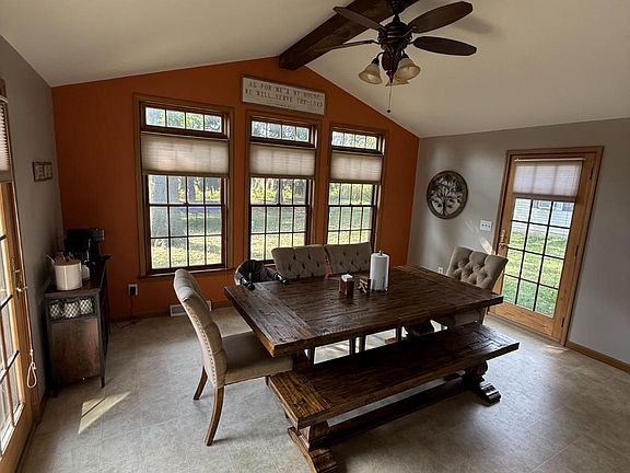 Modern appliancesCovered front porchSpacious layoutWood stoveFormal dining roomCathedral ceilingsInviting breakfast area