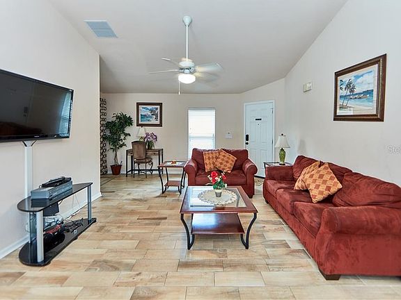 Great area for this gorgeous corner property. Make this your family home or Florida getaway. 4 bedrooms, 3 bathrooms being offer fully furnished. Open concept with sliding doors out to the pool deck. Two master suites with en suite bathrooms. Beautifully decorated and ready to occupy. Covered lanai gives shade on a sunny day, or lounge in the welcoming pool. Popular community of Sandy Ridge just 15 minutes from theme parks and close to all major road networks for access across the state to parks, shopping centers, beaches and golf courses. Call us now to schedule a showing!