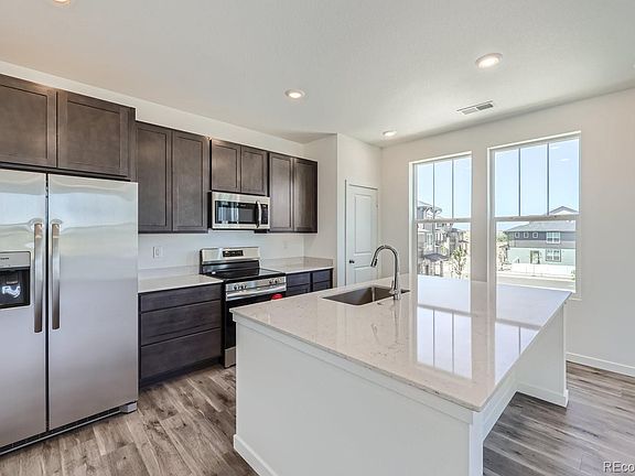 Move In Ready and Priced to Sell! This home is situated perfectly for views of the front range from your balcony! Gorgeous new Harvest Ridge Cielo plan features 2 bedrooms, 2.5 baths, great room, kitchen, crawlspace and 2 car garage. Gorgeous finishes and upgrades including stainless steel appliances, vinyl plank flooring, slab quartz counters/island and more! Lennar provides the latest in energy efficiency and state of the art technology with several fabulous floorplans to choose from. What some builders consider high-end upgrades, Lennar makes a standard inclusion. This community offers single family homes for every lifestyle. So much to see and do in this charming community – something for everyone. Photos and walkthrough tour are a model only and subject to change.