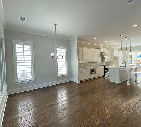 - Kitchen Features: Eat-in Kitchen, Pantry, View to Family Room, Stone Counters, Kitchen Island, Cabinets White