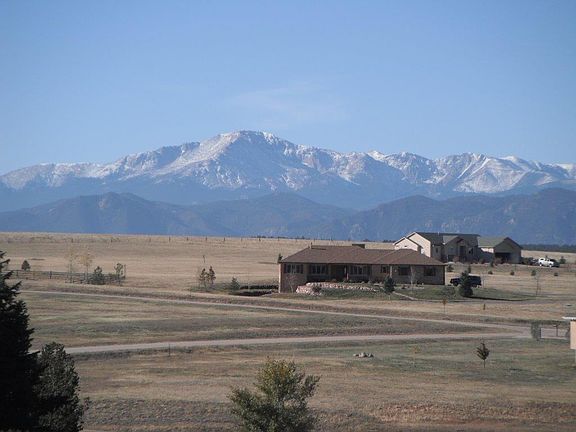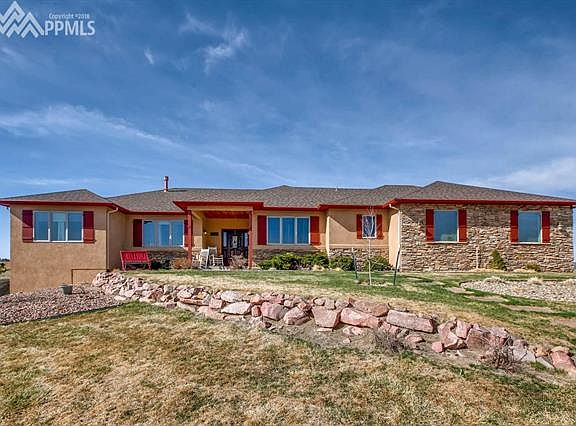 Beautiful custom home on 5 acres that boasts stunning mountain and Pikes Peak views. Main level, open concept living w/ great room, gorgeous hardwood flooring, brand new carpet throughout, vaulted ceilings, gas fireplace w/ floor to ceiling stone surround, formal dining room, spacious eat in kitchen w/ island, pantry and walk out to huge covered deck. Master w/ 5 piece bath, 2 add'l bedrooms, full bath and laundry. Walk out basement features family room, wet bar, office space, add'l bedrooms, bath and tons of storage. This 5 bed, 5 bath, 3 car ranch style home is bright, open and perfect for entertaining family and friends. Enjoy the many custom features throughout the home. Trey ceiling and wainscoting in the formal dining room. Great room/ living room with floor to ceiling stack stone fireplace and vaulted ceilings. Walk out to covered deck and stunning Pikes Peak views. Kitchen features, double oven, island, cook top w/ downdraft vent, pantry and open to living room. Spacious master with bay window, trey ceiling, gas fireplace, 5 piece on suite bath with jetted soaking tub and walk in closet. Two additional main level bedrooms, full bath, 1/2 bath and laundry round out the main level. Downstairs features huge family room with walk out and custom wet bar with microwave and min fridge. Additional bedrooms, 3/4 bath office space and storage complete the basement. Situated on 5 acres this home features manicured landscaping as well as natural grasses and wildflowers. Plenty of room for the whole family. Minutes from schools, shopping and entertainment. Easy access to Hwy 83 for a quick commute to Monument, Colorado Springs and Denver.