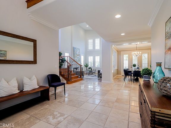 This luxurious home is nestled on one of the most sought-after streets and cul-de-sac locations within the guard-gated community of The Peninsula. Spanning over 3,600 SF of living space and a 9,000+ SF lot this Turnberry-model showcases the ideal floorplan. On the main floor is a large gourmet kitchen that comes with white modern cabinets, stainless steel appliances, a granite island, a built-in buffet with plenty of storage, a spacious eating area that is perfect for a large dining table, a cozy family room with a stone fireplace, an office-nook, a full-sized bedroom with en-suite bathroom, an additional powder room that is perfect for guests and a separate laundry room. High ceilings and windows offer a bright and airy feel along with recessed lighting and chandeliers found throughout. The gorgeous wooden staircase leads upstairs to the second level that includes an over-sized master bedroom with a patio over-looking the backyard and an en-suite bath that features a massive, jetted tub, his and her vanities, a separate shower and a large walk-in closet, two spacious secondary bedrooms each with their own en-suite bath, an office area and additional storage. Other upgrades include an owned solar panel system, a putting green, and refreshed landscaping. The private backyard is perfect for entertaining family and friends and summer BBQ's. The home is a short walk to Discovery Park and top-rated Seacliff Elementary School, neighbor to the exclusive Huntington Club and a short distance to the world famous Huntington Beach and Pacific City for shopping & great restaurants. This is a must see!