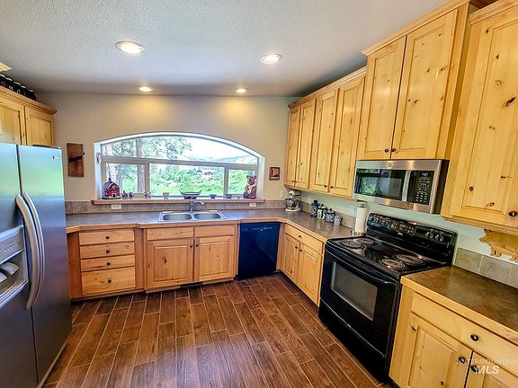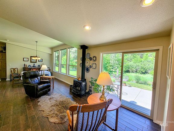 Nestled in the pines this one level home is like a slice of paradise! Truly turn key with thoughtful upgrades like oversized windows to enjoy the views in every direction! Vaulted ceilings, tile floors, knotty cabinets are all wrapped up in a really functional floor plan! A large patio and a deck over the spring are perfect places to listen to the water and the birds and watch the abundant wildlife. Three bedrooms, two baths, attached oversized garage. Just 30 minutes to Lewiston.