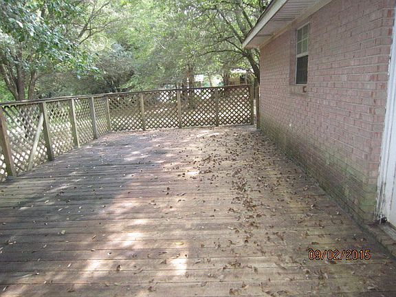 Great price for a 3/2 BRICK ranch home on a beautiful .85 acre level lot with mature trees. Wood burning fireplace in living room. Open floor plan with cathedral ceilings. Huge deck in the back perfect for entertaining. Beautiful oak trees in the back yard for shade. This home could be amazing with a little TLC. Subject to Alabama right of redemption laws