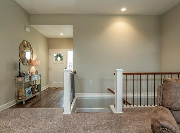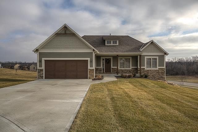Remarkable 1 year old ranch on large cul-de-sac, corner lot. Stacked stone fireplace compliments beamed Greatroom. Kitchen includes large walk-in pantry, granite cntrs, breakfast bar & SS appliances. Refrigerator stays. Covered east facing deck for your morning coffee. Comfortably sized bedrooms have spacious closets. Open concept plan w/neutral décor. Huge walkout LL awaits your finish to make this an incredible Reverse 1.5 story plan. Terrific location w/easy access to shopping, highways, schools & restaurants. Old Republic Home Warranty provided. Better than new with blinds/shades throughout. Vaulted ceilings in Greatroom and 2nd bedroom. Mstr bath offers raised granite counters, jetted tub, dbl vanity and large shower. Walk to fun artisian winery at top of street.
