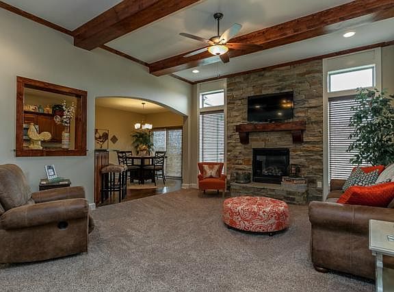 • Features: Carpet, Ceiling Fan(s), Fireplace